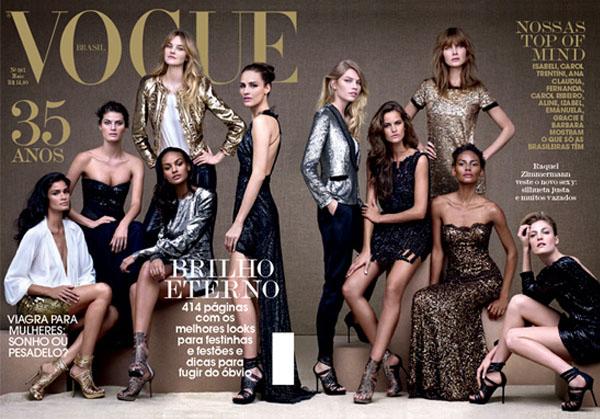 | Joan Smalls, Ajak Deng, Arlenis Sosa, Chanel Iman, Anais Mali, Jourdan Dunn & Sessilee Lopez US Vogue - February 2011 Photographer - Mario Testino Source - models.com |